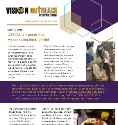 Our NEWSLETTERS are a summary of what we have been doing over a short period of time. These include updates from our administration offices and from the field. The MISSION STORIES give a single perspective, our NEWSLETTERS give a broader picture.